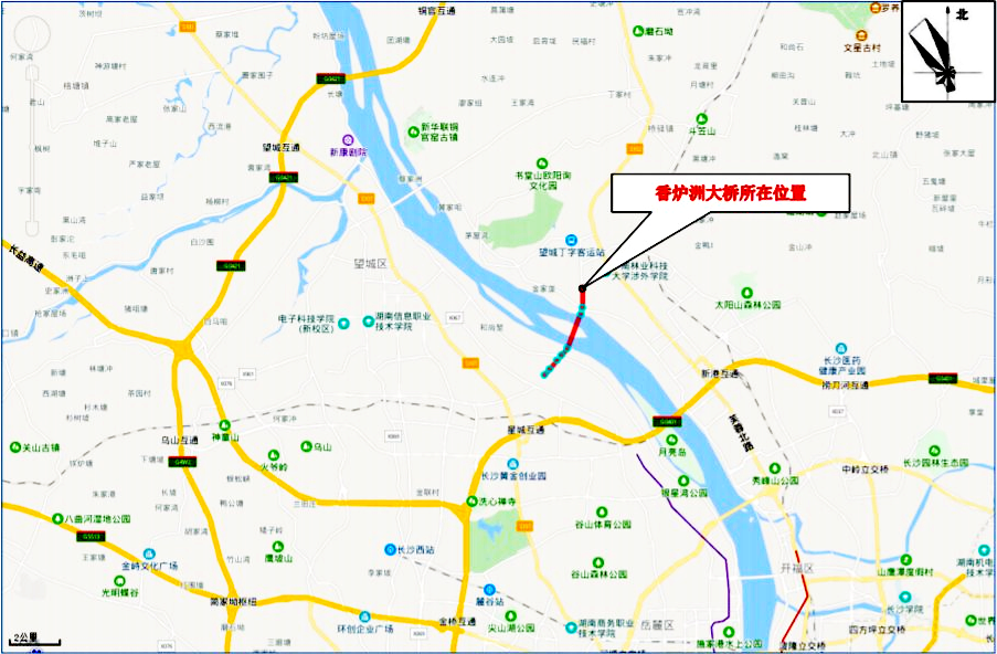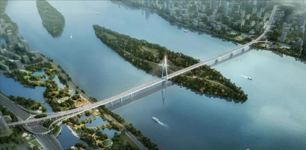 大桥按照I级航道标准建设,可容纳3000吨级船舶通航,抵御5000吨级的撞击力,是湘江跨度最大的独塔斜拉桥。总投资约27.1亿元,建设单位为望城区城投集团全资子公司长沙市望城区沿江建设开发有限公司。