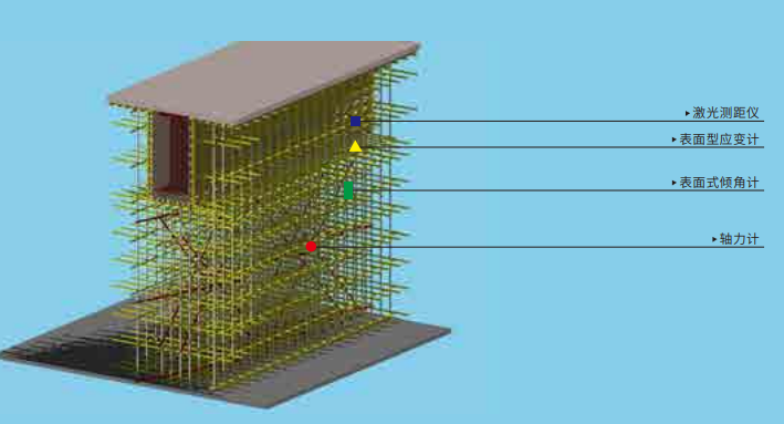 高支模,又称高支撑模板,是指支模高度大于或等于4.5m 时的支模作业,高支模能够提供一个稳固的模板结构,使得混凝土能够被浇灌到预定位置。住建部在《危险性较大的分部分项工程安全管理规定》(建设部令第37号)中规定了对于危大工程必须编制专项施工方案。通常所说的高支模即危险性较大的分部分项工程的混凝土模板支撑工程。因此必须选择合适的监测手段和技术设备,包括传感器、数据采集系统等。确保监测点位能够准确、及时地采集支模的变形和位移等数据。